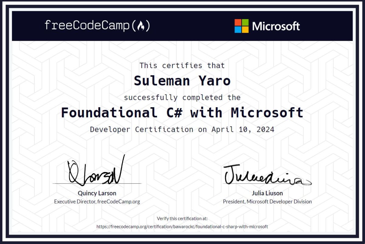 FOUNDATIONAL C# WITH MICROSOFT AND FREECODECAMP
