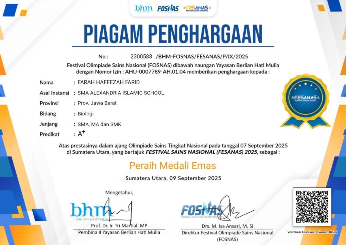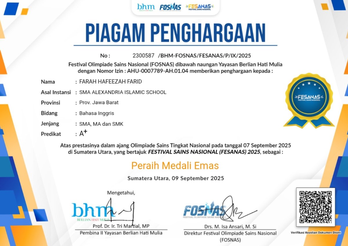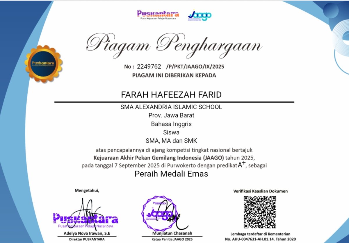 menerima juara 1 bahasa Inggris.