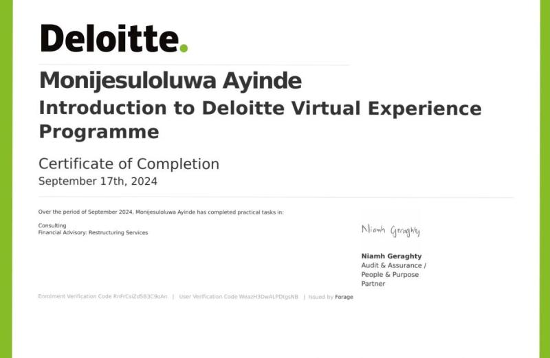 A Deloitte Visual Experience Program Certificate