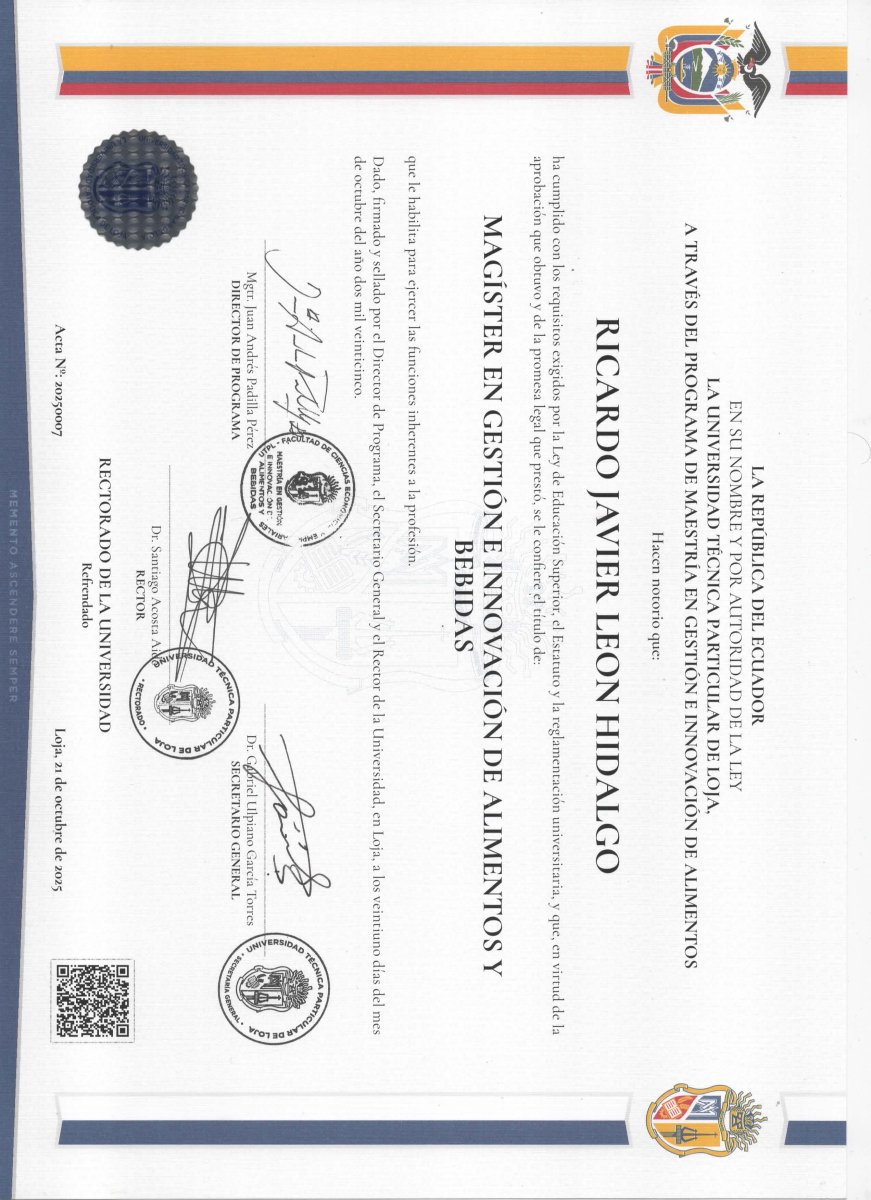Masters degree on "Gestión e innovación de alimentos y bebidas"