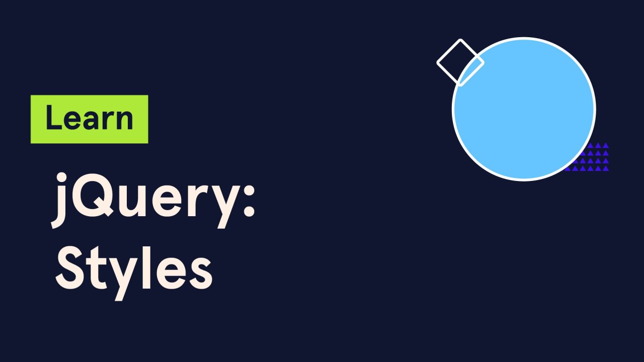 Continue your jQuery learning journey with Learn jQuery: Styles. Modify the CSS properties of an HTML element using jQuery style methods which can be applied immediately or over time.