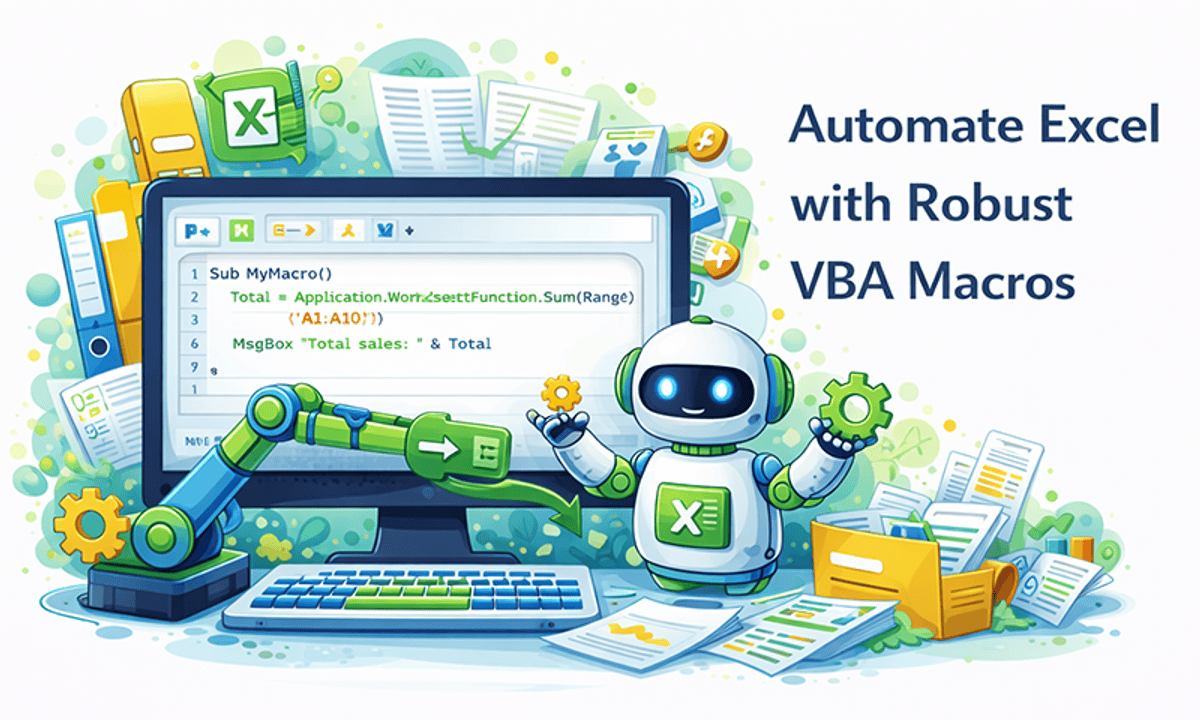 Ready to transform your Excel skills from proficient to powerful? This intermediate course, Automate Excel with Robust VBA Macros, is designed for professionals who want to move beyond manual data wrangling and build resilient, automated solutions. You will learn to eliminate repetitive work by translating complex, manual spreadsheet workflows into efficient VBA scripts. The course emphasizes creating enterprise-grade macros that not only work but also work reliably.