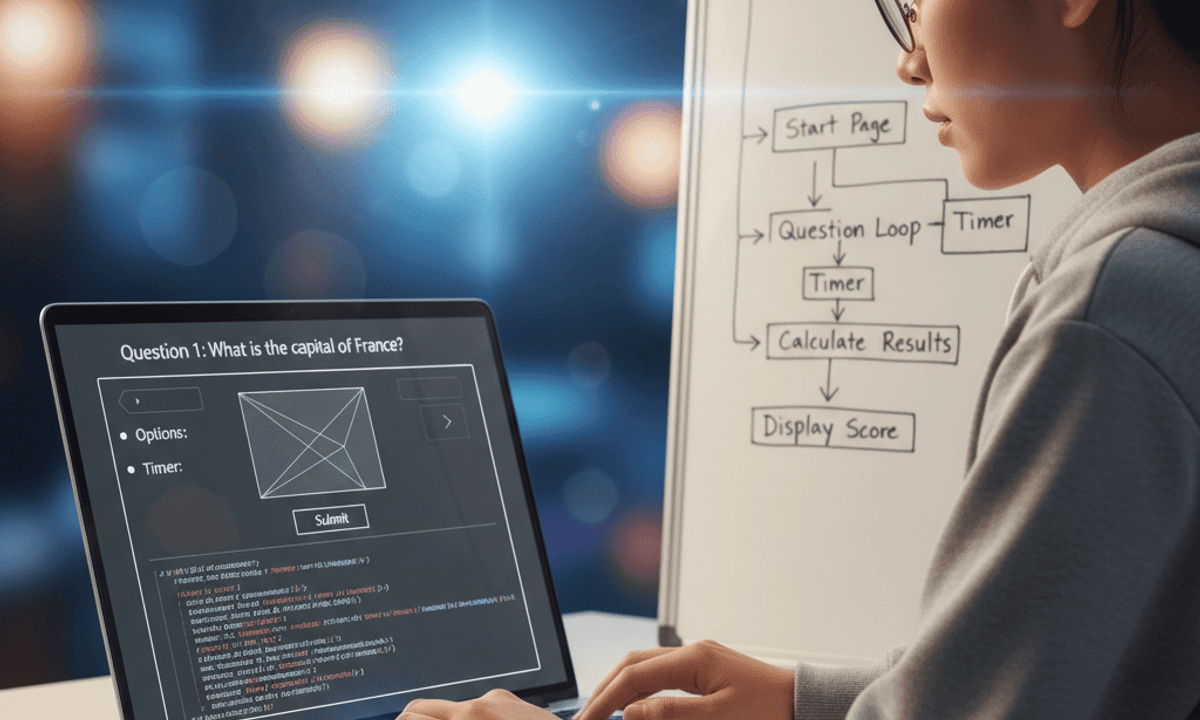 Learners will develop the ability to design a structured web application, implement dynamic features using JavaScript, apply effective styling with CSS, manage timed interactions, validate user input, calculate results, and deliver a complete, user-friendly quiz system.