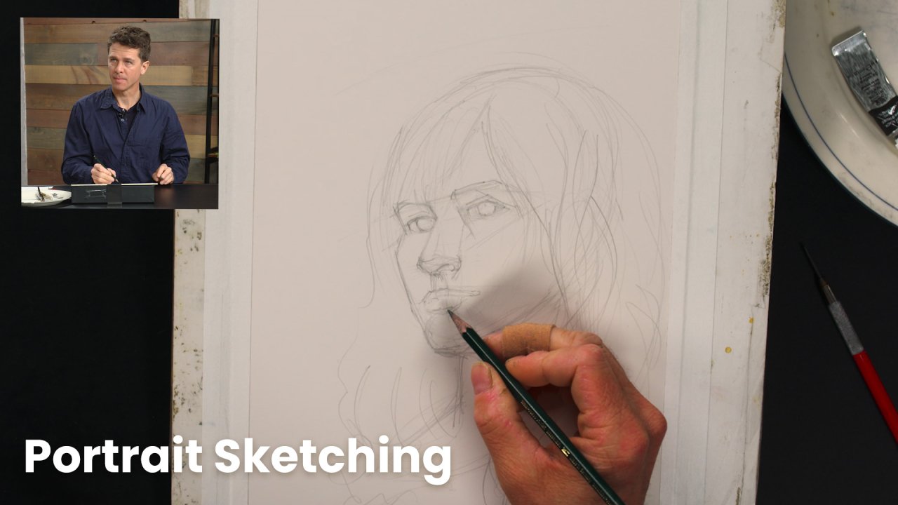 Join master artist, Stuart Loughridge, as he develops a beautiful portrait sketch through a process that he breaks down into three easy to manage stages and materials. With readily available materials like graphite pencils and watercolors, he will show you how to layer each medium on top of each other to create depth and interest. It’s a quick way of portrait sketching, each stage roughly taking 20 minutes or so, that allows you to not only travel easily with the materials but build up a portfolio of portraits of family and friends in no time. Stuart will take you through each stage slowly and methodically as he explains his decision-making to take a complex subject like a portrait of a young woman into easy to manage lines and values. Follow along as you get ready to start creating your own beautiful portraits!