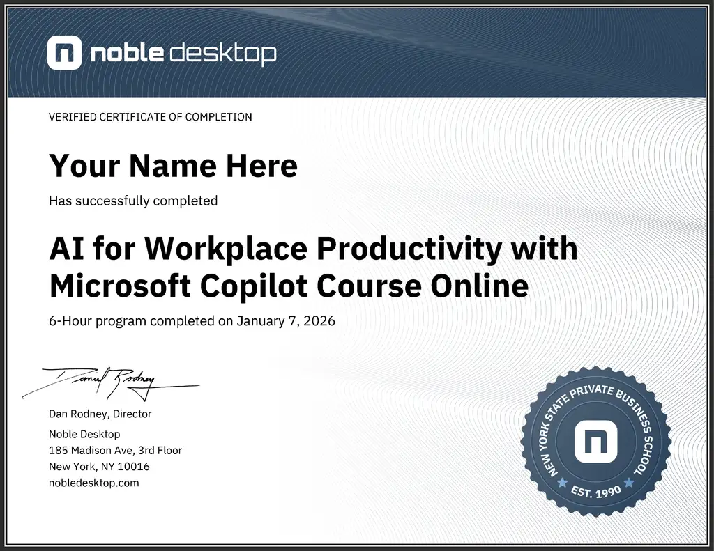 Use artificial intelligence to work more efficiently and creatively on the job. This course teaches you how to use Microsoft Copilot to save time, enhance productivity, and improve the quality of your work by integrating AI into everyday Office applications.