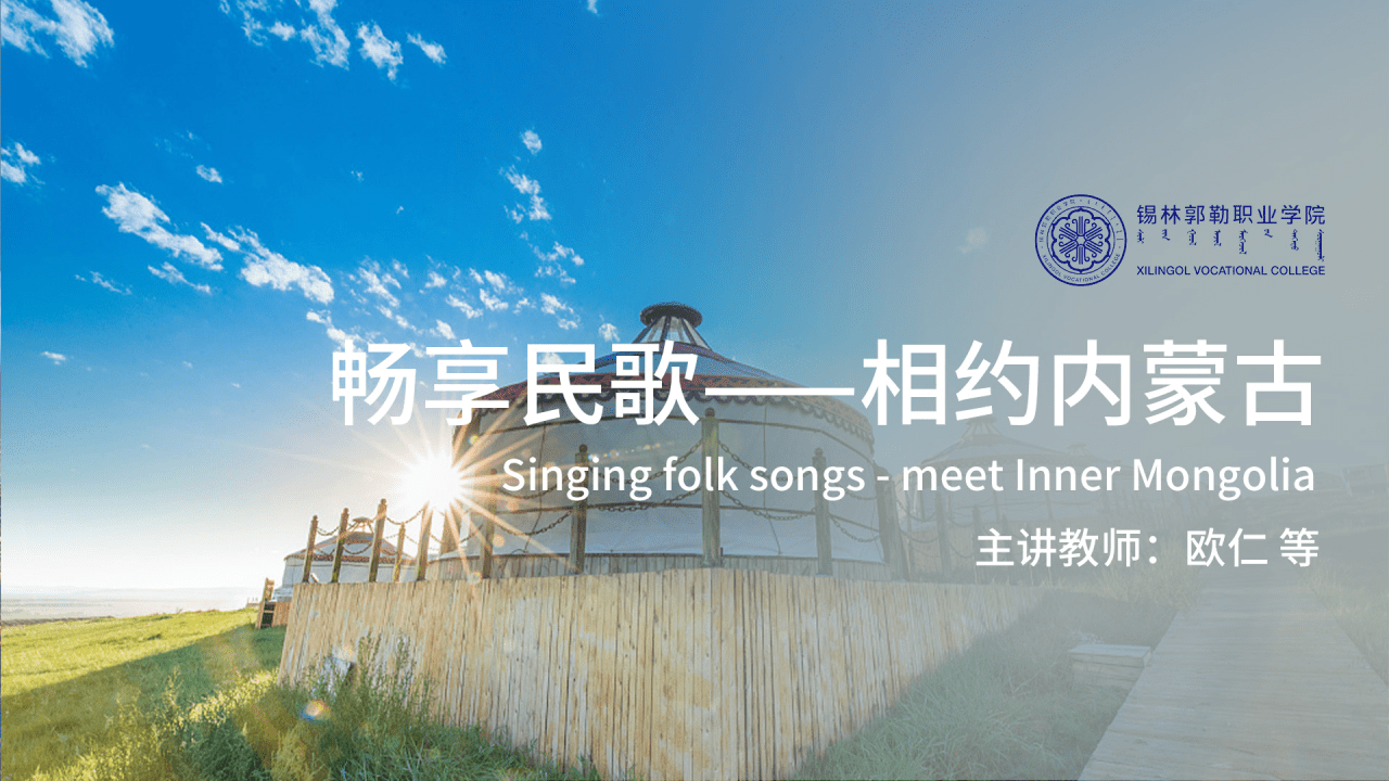《畅享民歌-相约内蒙古》课程主要面向全区中职学校、职业高中、普通高中的学生开设,主要以线上教学、展示、互动等方式,加强音乐素质教育,推进内蒙古传统音乐文化建设,为我区传统音乐的传承和发展提供重要支撑。本课程全面落实党的教育方针,以弘扬民族文化、增强爱国意识为目标,将赏析、学唱内蒙古具有代表性的巴尔虎色彩区、科尔沁色彩区、察哈尔色彩区、鄂尔多斯色彩区、乌拉特色彩区、阿拉善色彩区、鄂温克民族民歌、达斡尔民族民歌、鄂伦春民族民歌、漫瀚调等特色民歌为主要内容,使这些珍贵的非物质文化遗产得以薪火相传,让学生在接触非遗文化的同时,感受内蒙古民歌的独特魅力,切实增强学生的民族文化保护意识,增强责任感、紧迫感和使命感,树立高度的文化自觉和文化自信。