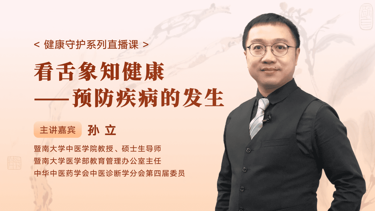 9月18日(今晚)19:00,我们特邀暨南大学中医学院教授孙立为您带来一场实用、易懂、能马上用的健康讲座——《看舌象知健康:预防疾病的发生》。直播中还将分享个性化的调理与养生建议,欢迎对健康感兴趣的朋友预约直播。