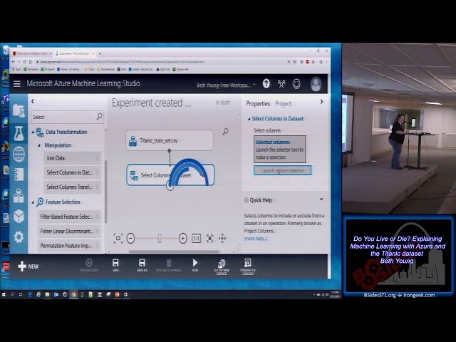 Explore machine learning concepts using Azure and the Titanic dataset in this 46-minute conference talk from BSidesSTL 2019. Dive into supervised and unsupervised learning, security applications, and the significance of the Titanic dataset. Learn how to get started with Azure Machine Learning Studio, including data preparation, column selection, and cleaning techniques. Discover the process of splitting data, connecting data types, and evaluating results using confusion matrices. Gain insights into creating predictive web services and utilizing Excel for machine learning tasks. Access resources on the Titanic dataset, machine learning examples, and Azure Machine Learning Studio to further enhance your understanding of this powerful technology.