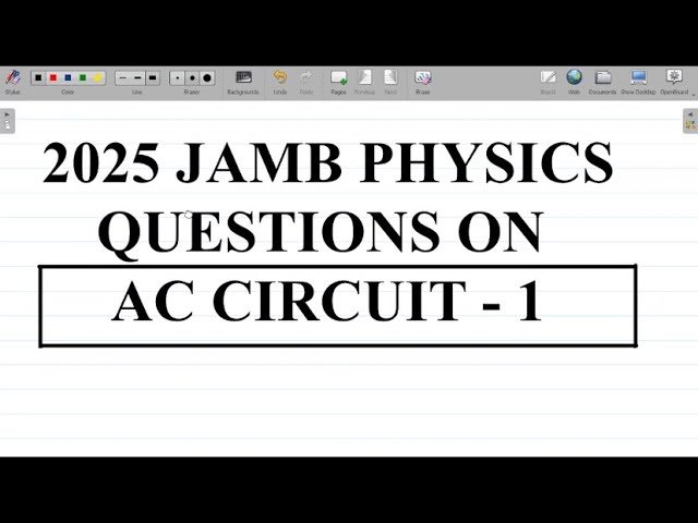 Learn how to solve AC Circuit problems from the 2025 JAMB Physics examination in this educational video tutorial. Master key concepts of alternating current circuits while working through detailed solutions and explanations of actual exam questions. Gain practical problem-solving techniques and strengthen understanding of AC Circuit principles through step-by-step guidance from an experienced physics instructor.