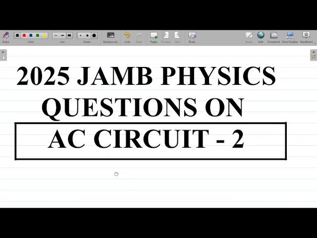 Learn how to solve AC Circuit problems from the 2025 JAMB Physics examination in this educational video tutorial. Master key concepts of alternating current circuits while working through detailed solutions and explanations of actual exam questions. Gain practical problem-solving techniques and strengthen understanding of AC Circuit principles through step-by-step guidance from an experienced physics instructor.