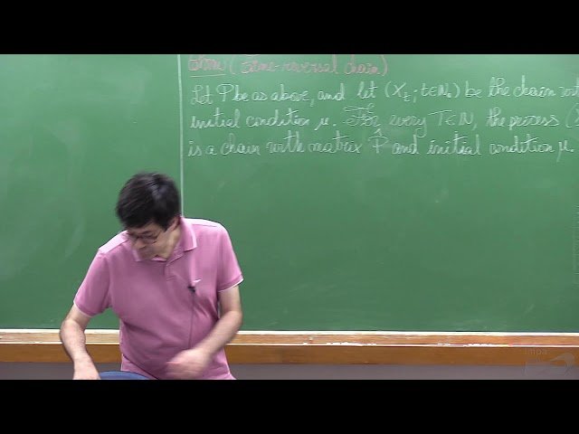 Assista à sexta aula do curso de mestrado sobre Cadeias de Markov ministrado pelo Professor Milton Jara no Instituto de Matemática Pura e Aplicada durante a Escola de Verão 2026. Explore conceitos fundamentais da teoria de Cadeias de Markov através de uma abordagem rigorosa baseada no livro "Markov Chains and Mixing Times" de Levin, Peres e Wilmer. Desenvolva compreensão sobre processos estocásticos discretos no tempo, propriedades de transição entre estados, e comportamento assintótico de cadeias. Aprofunde conhecimentos em teoria da probabilidade aplicada com foco em técnicas matemáticas avançadas utilizadas em pesquisa contemporânea. Beneficie-se dos pré-requisitos recomendados incluindo familiaridade com conceitos elementares de probabilidade no nível intermediário e conhecimentos básicos de álgebra linear para maximizar o aproveitamento do conteúdo apresentado. Acompanhe demonstrações matemáticas detalhadas, exemplos práticos e aplicações da teoria em áreas de pesquisa recente durante esta sessão de quase duas horas de duração.