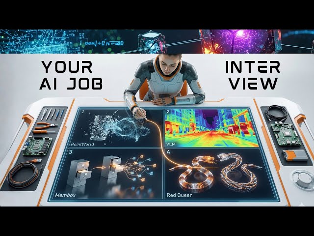 Explore four cutting-edge AI research papers from Stanford, Harvard, MIT, and other leading institutions to gain competitive advantages for senior AI positions. Analyze breakthrough research including PointWorld's 3D world models for robotic manipulation, VLM4VLA's vision-language-action model improvements, Membox's long-range memory solutions for LLM agents, and Digital Red Queen's adversarial program evolution using large language models. Learn how to leverage these latest research insights to differentiate yourself in job interviews by presenting concrete ideas for improving AI performance, generating new revenue streams, and developing unique features based on state-of-the-art findings from top-tier research institutions and companies like NVIDIA, Alibaba, Tsinghua University, and Sakana AI.