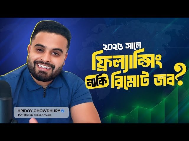 এই ২০ মিনিটের ভিডিওতে ফ্রিল্যান্সিং এবং রিমোট জবের মধ্যে পার্থক্য, সুবিধা-অসুবিধা এবং ২০২৫ সালে কোন ক্যারিয়ার পথটি বেছে নেওয়া উচিত সে বিষয়ে বিস্তারিত জানুন। SEO মেন্টর ও ফ্রিল্যান্স গাইড হৃদয় চৌধুরীর কাছ থেকে শিখুন ফ্রিল্যান্সিং এবং রিমোট জবের মূল সংজ্ঞা, ফ্লেক্সিবিলিটি বনাম স্টেবিলিটির তুলনা, আয় ও ক্যারিয়ার গ্রোথের সম্ভাবনা এবং লাইফস্টাইলের উপর প্রভাব সম্পর্কে। আবিষ্কার করুন কোন ক্যারিয়ার অপশনটি আপনার ব্যক্তিত্ব, দক্ষতা এবং জীবনযাত্রার সাথে সবচেয়ে ভালো মানানসই হবে এবং ২০২৫ সালের চাকরির বাজারে কোনটি বেশি সুবিধাজনক হতে পারে।
