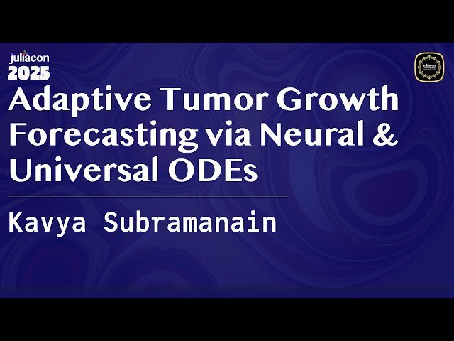 Learn how to enhance traditional tumor growth prediction models using Scientific Machine Learning techniques in this conference talk that demonstrates the application of Neural Ordinary Differential Equations (Neural ODEs) and Universal Differential Equations (UDEs) to overcome limitations of conventional mathematical models. Discover how traditional ODE-based models like Gompertz and Bertalanffy equations, while providing theoretical foundations, often fail to capture the complexity of real-world tumor progression influenced by factors such as microenvironment, chemotherapy, genetics, and immune response. Explore the implementation of a SciML approach using Julia packages including DifferentialEquations.jl for numerical ODE solving, DiffEqFlux.jl for neural network integration, Lux.jl for neural architecture construction, and Optimization.jl with OptimizationOptimisers.jl for parameter optimization using gradient-based methods like Adam and BFGS. Understand how UDE models replace fixed growth parameters with neural networks, enabling better adaptation to experimental data and improved prediction accuracy compared to traditional models. Examine the potential for personalized medical treatment through tumor growth predictions tailored to individual clinical histories, and learn how this data-driven approach can optimize treatment planning and enhance clinical decision-making in oncology while advancing precision medicine applications.
