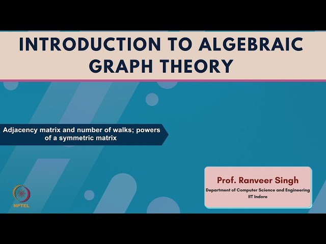 Learn how adjacency matrices represent graph structures and discover the relationship between matrix powers and counting walks between vertices in this 22-minute lecture, exploring the mathematical properties of symmetric matrices and their applications in graph theory analysis.