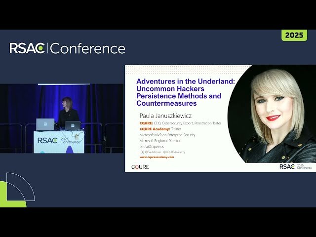 Explore uncommon persistence methods used by attackers to maintain stealth in compromised networks through this 54-minute conference talk from RSA Conference. Discover how malware hides even from advanced monitoring tools based on real-world experiences shared by Paula Januszkiewicz, CEO & Founder of CQURE Inc. Learn to identify sneaky tactics employed by persistent threats and understand how to strengthen defenses specifically in Windows environments. Gain insights into the sophisticated techniques that allow attackers to remain undetected while maintaining long-term access to compromised systems, and develop practical skills for detecting and mitigating these advanced persistence mechanisms.