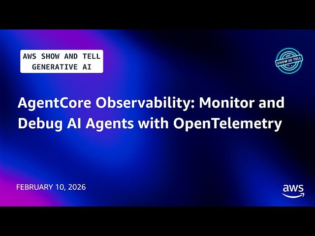 Learn to implement comprehensive monitoring and debugging capabilities for AI agents using Amazon Bedrock AgentCore Observability in this AWS Show and Tell webinar. Discover how to build transparent and reliable AI agents with enterprise-grade observability from day one. Master monitoring, analyzing, and auditing AI agent interactions across different frameworks and foundation models. Explore implementation strategies for both AgentCore Runtime-hosted agents and self-deployed infrastructure while gaining real-time visibility into agent performance through detailed tracing. Understand how to leverage standardized OpenTelemetry (OTel) integration to reduce debugging time and improve user trust in AI systems. Access practical guidance on incorporating observability best practices throughout your development lifecycle, whether you're starting fresh or enhancing existing agent deployments. Benefit from hands-on tutorials, quick start guides, and configuration resources designed for developers, solutions architects, and AI/ML practitioners building production-ready AI agents.