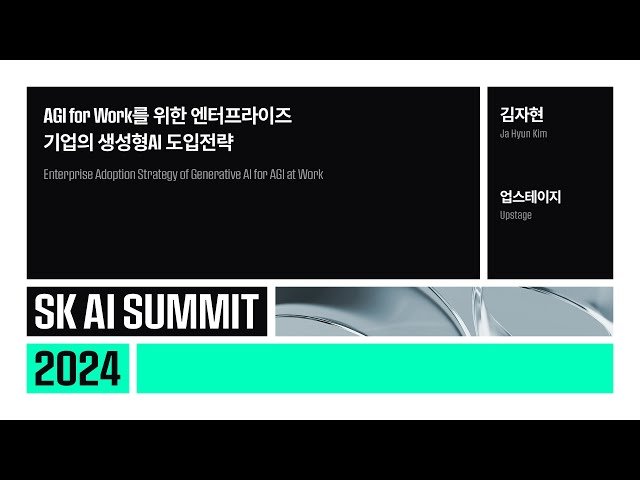 Discover enterprise strategies for implementing generative AI in business operations through this insightful conference talk from SK AI SUMMIT 2024. Learn about Upstage's technological direction towards AGI optimized for enterprise workflows, featuring world-class implementation cases. Explore practical adoption strategies for Private LLM using Small Language Models (SLM) and business innovation through generative AI model fine-tuning, drawing from Upstage's market-leading experience with their proprietary models. Get introduced to Solar-pro, their next-generation proprietary generative AI model. Presented by Jahyun Kim from Upstage, known as part of the 'AI Avengers', who brings extensive experience from SK Broadband media strategy, Kakao AI business, and leadership roles at Kakao Enterprise Connect Center/AICC business development, while currently co-operating 'BizDev KR', Korea's leading IT business development community.