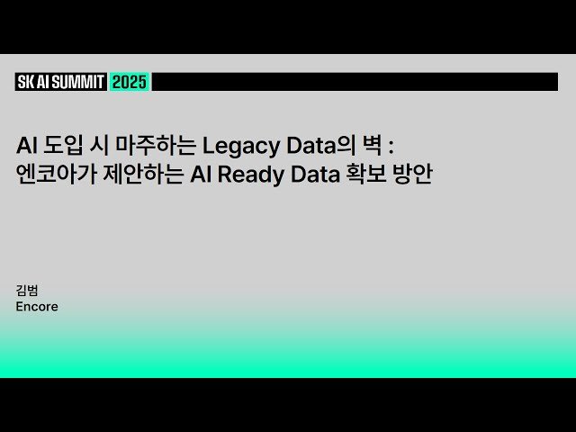 Explore how enterprises can overcome legacy data challenges when implementing AI solutions in this 20-minute conference talk from SK AI SUMMIT 2024. Learn about the common obstacles companies face with legacy systems and data infrastructure that prevent successful AI adoption. Discover Encore's decades of experience in data management and their proposed solutions for transforming Legacy Data Architecture into Modern Data Architecture. Understand practical strategies for modernizing data governance and gain insights into solving real-world challenges that organizations encounter during their AI transformation journey. The presentation covers effective methodologies for securing high-quality AI Ready Data, innovative architectural approaches, and solution development strategies that maximize AI utilization across diverse enterprise environments.