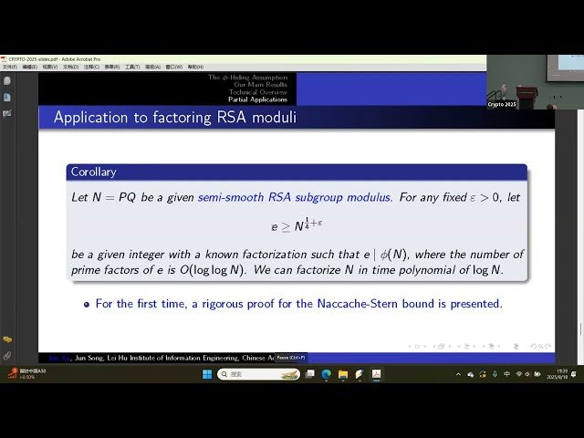 Explore advanced algorithmic number theory concepts in this 18-minute conference talk, the second of two presentations from the Algorithmic Number Theory session at Crypto 2025, chaired by Niv Gilboa. Delve into cutting-edge research and methodologies in computational number theory as they apply to cryptographic applications. Access comprehensive materials including research papers and presentation slides through the official Crypto 2025 program to enhance your understanding of the latest developments in this specialized field of mathematics and cryptography.