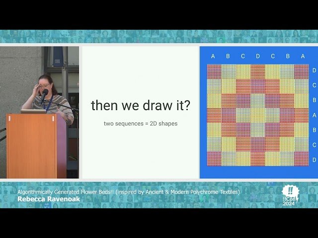 Explore a fascinating 12-minute conference talk from !!Con 2024 where artist and programmer Rebecca Ravenoak demonstrates how to create digital flowerbed textures using algorithmic techniques inspired by ancient and modern polychrome textiles. Learn about the fascinating intersection of traditional weaving patterns, specifically the Crackle or Jämtlandsdräll fabric structure, and digital art creation. Discover how overlapping and interlacing colors, similar to textile weaving techniques, can generate unique pixel art patterns and textures. Drawing from their experience as both a computer programmer and textile artist, Ravenoak shares insights from their creative practice, which spans digital and physical mediums, all while working from their cat-filled, succulent-adorned home south of Oakland.