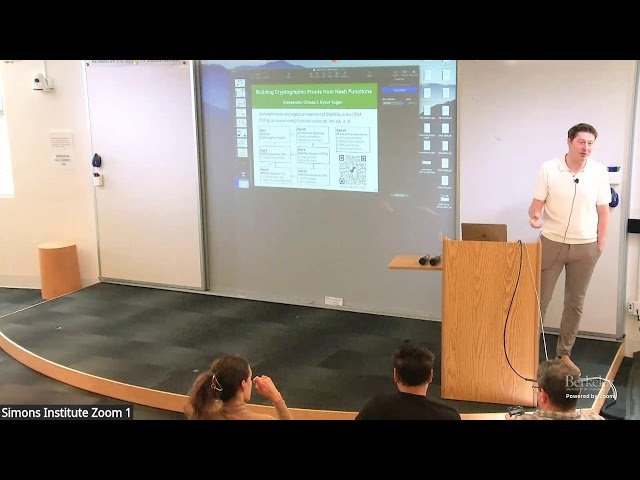 Learn about commitment-based succinct arguments in this lecture by Alessandro Chiesa from EPFL at the Simons Institute. Explore how many succinct arguments are constructed by combining information-theoretic probabilistic proofs with cryptographic commitment schemes. Discover how several popular constructions of succinct arguments can be understood as special cases of one elegant recipe, providing a systematic and precise framework for understanding a significant portion of the SNARG (Succinct Non-interactive ARGument) landscape. Gain insights into the theoretical foundations that underpin these cryptographic proof systems and their practical applications in modern cryptography.