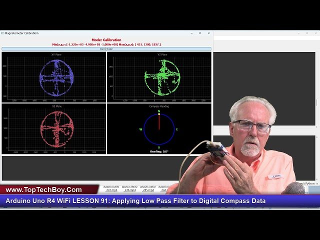 Learn to implement a low pass filter on digital compass data using the Arduino Uno R4 WiFi and QMC5883L magnetometer. Discover how to apply filtering techniques to your compass calibration program to achieve more precise calibration results and significantly improve the stability of your digital compass operations. Master the process of reducing noise and fluctuations in magnetometer readings through proper low pass filter implementation, enabling smoother and more reliable compass functionality in your Arduino projects.