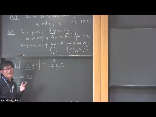 This lecture from the Joint Princeton University/Institute for Advanced Study Number Theory series explores recent progress in random multiplicative functions and their applications in number theory. Discover how these random models connect to the Fyodorov-Hiary-Keating conjecture and Polya's question on nonnegative character sums. Learn about applications to character sums estimates and Mobius cancellations as presented by Max Wenqiang Xu from New York University. The talk is scheduled for May 08, 2025, at 4:30pm in Simonyi 101 with remote access options available.