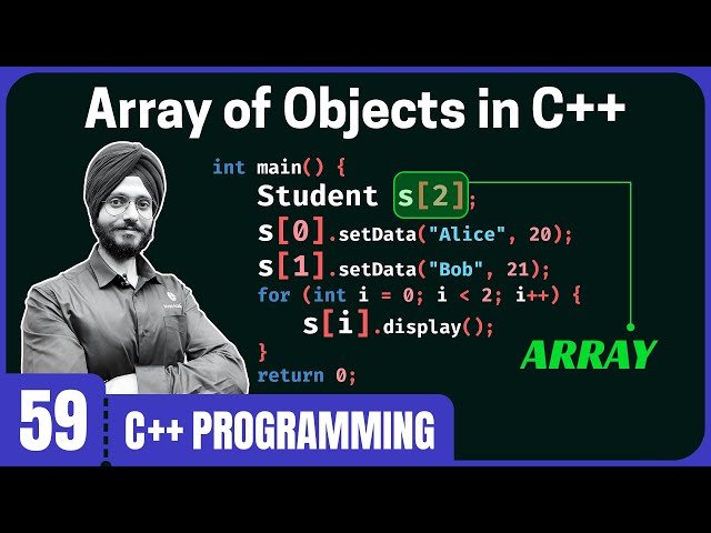 Learn how to work with arrays of objects in C++ programming through this 15-minute tutorial that covers fundamental array concepts and their application to object-oriented programming. Master the basics of arrays as data structures before progressing to creating and manipulating arrays that contain objects rather than primitive data types. Explore how to declare, initialize, and access elements within object arrays, understanding the memory allocation and management involved when storing multiple instances of custom classes or structures. Discover practical implementation techniques for organizing related objects in a single array structure, enabling efficient data processing and manipulation in object-oriented C++ applications. Gain hands-on experience with syntax, best practices, and common use cases for object arrays that will enhance your ability to write more sophisticated C++ programs involving collections of custom data types.