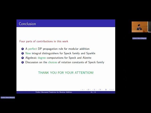 Explore the first of three conference talks on ARX presented at FSE 2025 and chaired by Yosuke Todo, covering foundational concepts and research developments in this cryptographic area over 23 minutes of expert presentation from the International Association for Cryptologic Research.