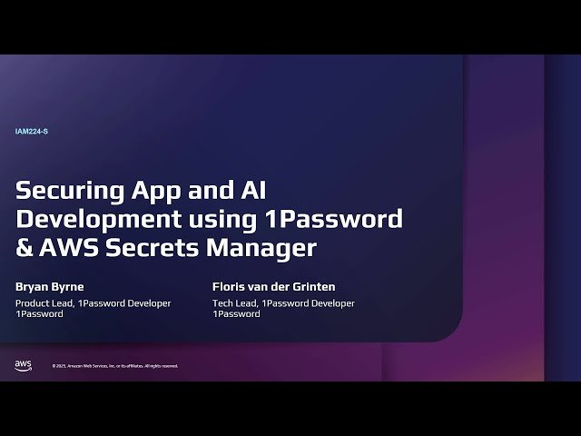 Explore how to secure application and AI development through effective secrets management in this conference presentation from AWS re:Inforce 2025. Learn practical approaches to managing sensitive credentials and secrets that developers encounter when building on AWS infrastructure, with particular focus on emerging agentic AI use cases. Discover how 1Password integrates with AWS Secrets Manager to simplify and strengthen secrets management workflows for development teams. Watch a live demonstration showcasing how these tools work together to enhance security practices while maintaining developer productivity. Gain insights into best practices for credential management, secure development workflows, and protecting sensitive data in cloud environments. Understand how proper secrets management becomes increasingly critical as organizations adopt AI-driven applications and services. This 14-minute session provides actionable strategies for implementing robust security measures without compromising development velocity, presented by 1Password as an AWS Partner at the premier cloud security conference.