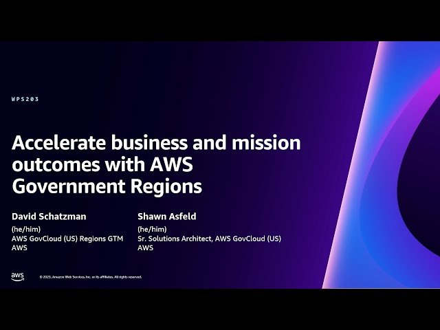 Discover how AWS Government Regions, including GovCloud (US), Secret Region, and Top Secret Regions, enable accelerated deployment of modern applications in a 19-minute lightning talk from AWS re:Invent 2023. Explore purpose-built cloud infrastructure specifically designed for civilian, healthcare, and financial agencies, as well as the U.S. Intelligence Community, Department of Defense, and defense industrial base. Learn about compliance-eligible, secure, and scalable solutions that reduce risk compared to traditional on-premises deployments while meeting critical mission requirements and workload demands for government organizations and their technology partners.