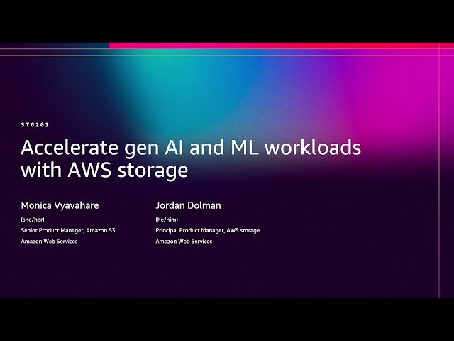 Explore how AWS storage solutions can accelerate generative AI and machine learning workloads in this comprehensive conference session from AWS re:Invent 2025. Discover the critical role of data strategy in generative AI success, where your data serves as a key differentiator whether you're building custom models or fine-tuning foundation models. Learn about essential data tools that can power your generative AI initiatives and understand the common data patterns necessary to transform generic AI applications into business-specific solutions that truly understand your organization and customers. Gain insights into how proper data strategy and storage architecture can elevate your generative AI applications from basic tools to sophisticated programs tailored to your unique business requirements and customer needs.