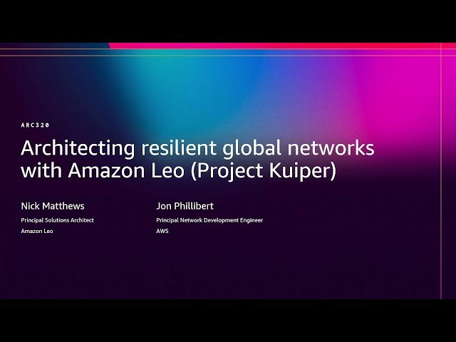 Explore how Amazon Leo's Low Earth Orbit satellite constellation revolutionizes global connectivity architecture in this conference talk from AWS re:Invent 2025. Discover the advanced network components including antennas, space lasers, ground gateways, and intelligent routing systems that integrate seamlessly with AWS services to deliver robust, low-latency solutions. Learn proven architectural patterns for enhancing application resilience, implementing secure remote data transfer protocols, and optimizing edge computing performance across distributed environments. Examine real-world use cases addressing critical infrastructure challenges such as maintaining connectivity during natural disasters, securing remote operations in challenging environments, and extending compute capabilities to network edges for improved global reach and reliability. Gain insights into designing resilient network architectures that leverage satellite technology to overcome traditional connectivity limitations and support mission-critical applications worldwide.
