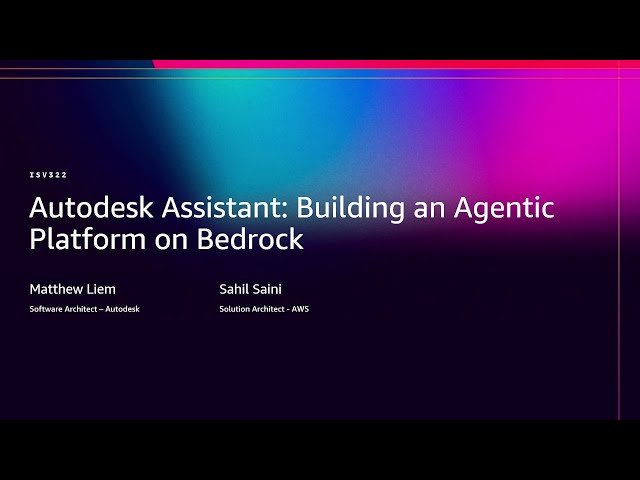 Explore how Autodesk built a next-generation agentic AI platform to unify fragmented workflows and create consistent experiences across their product portfolio in this 21-minute conference talk from AWS re:Invent 2025. Discover the architecture and implementation approach behind the Autodesk Assistant Platform, an AI partner that anticipates user needs and performs complex tasks in collaboration with humans. Learn how the platform leverages Amazon Bedrock AgentCore and Strands to seamlessly bridge cloud and desktop environments while coordinating domain-specific agents and MCP servers for contextual insights and workflow automation. Gain insights into the key lessons learned from designing and scaling an enterprise-level agentic platform that breaks down product silos, including technical challenges, architectural decisions, and best practices for implementing AI agents at scale.