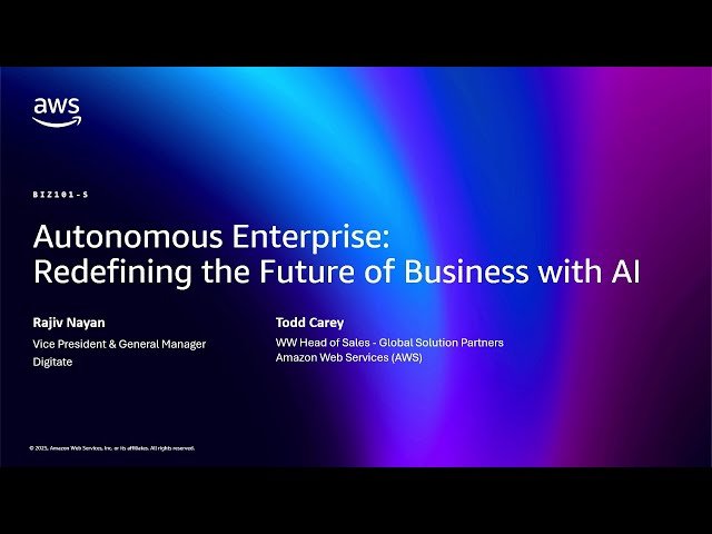 Explore how AI-driven automation is transforming business operations into Autonomous Enterprises through this 16-minute conference presentation from AWS re:Invent 2025. Discover how global businesses with complex technology landscapes are rapidly embracing Generative AI, Agentic AI, and cloud-native technologies to shift operations from traditional SLAs to XLAs and SRE models. Learn how organizations can harness intelligence at scale to create systems that learn, adapt, and make decisions with minimal human intervention while operating faster, smarter, and more efficiently. Examine real-world examples demonstrating how businesses can reduce operational complexity, unlock new avenues for growth and innovation, and navigate the increasing pressure to optimize their operations. Understand the practical applications of AI-driven automation in creating truly autonomous business environments that can respond dynamically to changing conditions and requirements. This presentation is delivered by Digitate, an AWS Partner, providing industry insights into the future of AI-powered business transformation.