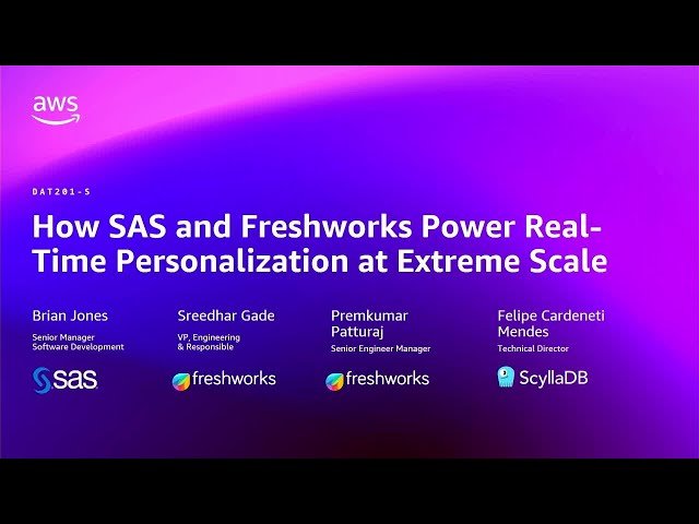Explore how two major companies built real-time data infrastructure to handle extreme scaling requirements in this AWS re:Invent 2025 conference talk. Discover SAS's approach to designing their SAS 360 Match real-time ad decisioning architecture, which combines intelligent decision logic with high-speed delivery pipelines to achieve sub-second responsiveness, fault tolerance, and campaign optimization at scale. Learn about the architectural choices behind cloud-native components and horizontally scalable data layers that enable the system to handle "big game" traffic spikes and hypergrowth demands. Examine Freshworks' redesign of their AI-powered business software architecture that supported 10X growth while achieving 95% latency reduction and significant cost savings. Gain insights into the technical strategies, scaling solutions, and architectural decisions that enable real-time personalization at enterprise scale, presented by industry experts Brian Jones from SAS and Sreedhar Gade from Freshworks, with support from AWS Partner ScyllaDB.