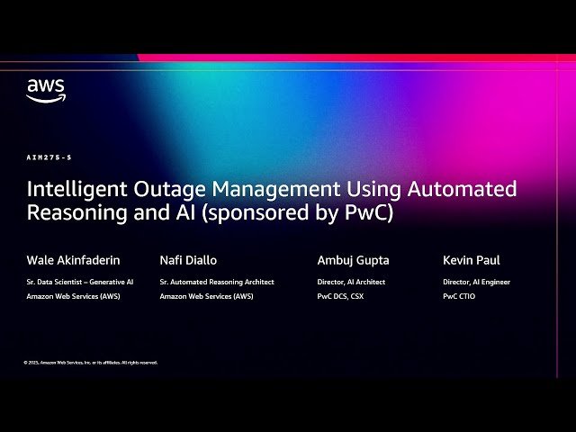 Explore how automated verification techniques are revolutionizing outage management in this 20-minute conference presentation from AWS re:Invent 2025. Discover a comprehensive solution that significantly reduces response times by delivering accurate, real-time ETA updates for customer service tickets while validating AI-generated outage classifications to ensure maximum reliability. Learn about the integration of standardized protocols that align with regulatory guidelines and maintain strict compliance with NERC and FERC requirements. Understand how this innovative approach delivers faster, more consistent, and trustworthy outage resolution that simultaneously enhances customer experience and operational efficiency. Gain insights from PwC, an AWS Partner, on implementing automated reasoning and AI technologies to transform traditional outage management processes into intelligent, data-driven systems that meet both customer expectations and regulatory standards.