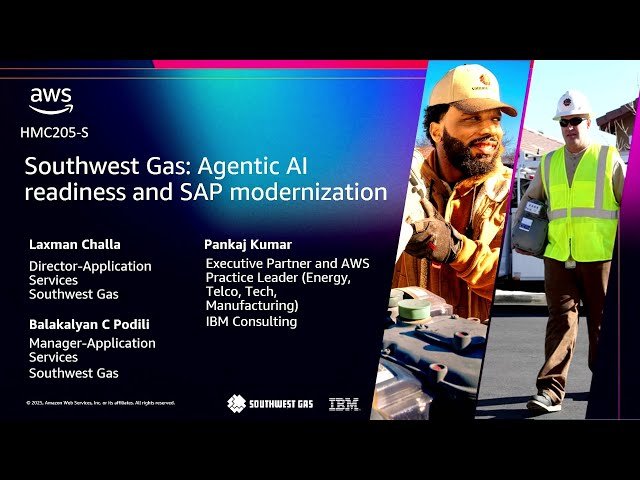 Explore how Southwest Gas is building foundational infrastructure for agentic AI implementation using Amazon Bedrock and AWS services in this 19-minute conference presentation from AWS re:Invent 2025. Discover the strategic approach to preparing enterprise systems for autonomous AI agents while simultaneously modernizing SAP environments. Learn about the technical architecture decisions, implementation challenges, and best practices for integrating advanced AI capabilities into existing enterprise workflows. Examine real-world use cases and practical insights from Southwest Gas's journey toward AI-ready infrastructure, including how they leverage AWS cloud services to support both current operational needs and future agentic AI deployments. Gain understanding of the intersection between SAP modernization efforts and AI readiness initiatives, with specific focus on creating scalable, secure foundations that can support intelligent automation and decision-making systems.
