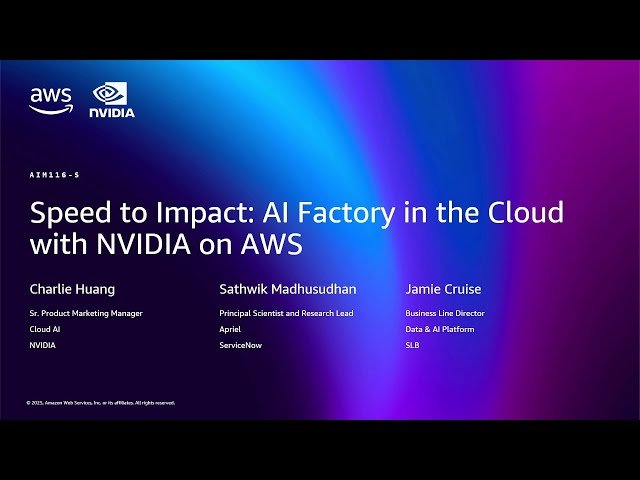 Explore how to accelerate AI development and deployment through turnkey, full-stack AI factories in the cloud during this 38-minute panel discussion from AWS re:Invent 2025. Discover the strategic collaboration between NVIDIA's optimized hardware, software, and AI expertise with AWS' scalable, co-engineered infrastructure to tackle the increasing complexity and resource demands of mission-critical AI systems. Learn from real customer success stories that demonstrate how this partnership enables rapid and efficient delivery of advanced generative and agentic AI applications by optimizing every infrastructure layer. Gain insights into leveraging best-in-class tools from both NVIDIA and AWS to streamline your AI development pipeline and reduce time-to-market for AI solutions. Understand how organizations are overcoming traditional barriers to AI implementation through cloud-based AI factories that provide comprehensive, ready-to-deploy environments for sophisticated AI workloads.