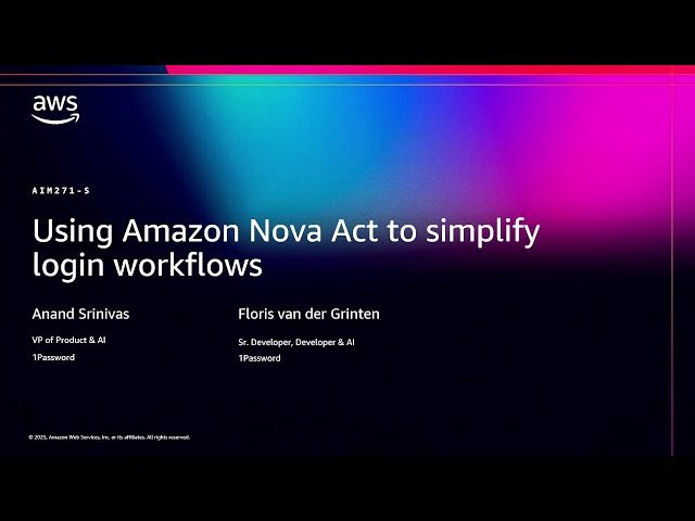 Explore how Amazon Nova Act revolutionizes intelligent automation by navigating the web independently, interpreting complex patterns, and adapting dynamically in this 16-minute conference presentation from AWS re:Invent 2025. Discover how 1Password leverages Amazon Nova Act to streamline login experiences for both consumers and businesses, demonstrating the technology's capability to understand and automate login processes at scale across thousands of websites. Learn about the practical applications of this advanced automation tool that redefines scalable web interaction and workflow simplification. Gain insights into how Amazon Nova Act's intelligent navigation capabilities can transform user authentication experiences through real-world implementation examples from an AWS Partner's perspective.
