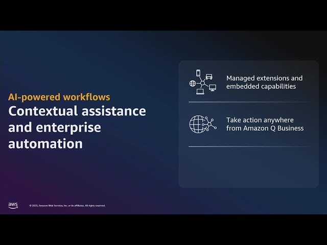 Explore the latest updates and enhancements to AWS Q Business in this 34-minute conference talk from AWS Summit London 2025. Discover new features, capabilities, and improvements that have been introduced to AWS's AI-powered business assistant service. Learn how these updates can help organizations leverage artificial intelligence to enhance productivity, streamline workflows, and make data-driven decisions more effectively. Gain insights into practical applications and real-world use cases that demonstrate the evolving capabilities of Q Business. Understand how these new features integrate with existing AWS services and can be implemented within your organization's cloud infrastructure to drive innovation and operational efficiency.