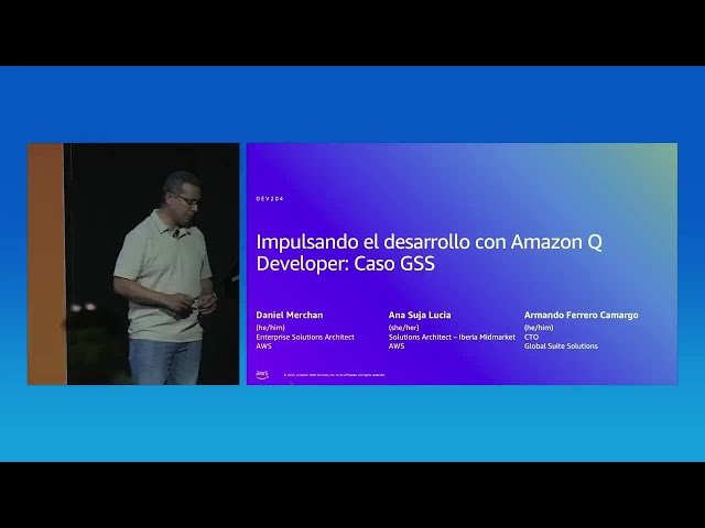 Explore how Amazon Q Developer accelerates software development through a detailed case study presentation from GSS at AWS Summit Madrid 2025. Discover practical implementation strategies, real-world applications, and development workflow improvements using Amazon Q Developer's AI-powered coding assistance capabilities. Learn from industry experts about integrating this tool into existing development processes, understand its impact on productivity and code quality, and gain insights into best practices for leveraging AI-driven development tools in enterprise environments. The session provides concrete examples of how GSS successfully implemented Amazon Q Developer to enhance their development lifecycle, reduce coding time, and improve overall software delivery efficiency.