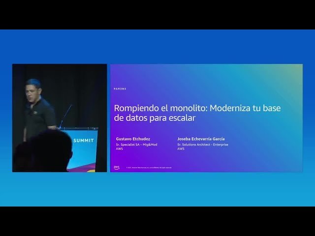 Aprende a romper arquitecturas monolíticas y modernizar bases de datos para lograr escalabilidad en esta conferencia de 36 minutos del AWS Summit Madrid 2025. Descubre estrategias y mejores prácticas para transformar sistemas de bases de datos tradicionales en soluciones modernas y escalables utilizando los servicios de AWS. Explora técnicas de migración, patrones de arquitectura distribuida y herramientas específicas que facilitan la transición desde monolitos hacia microservicios con bases de datos optimizadas para el crecimiento empresarial.