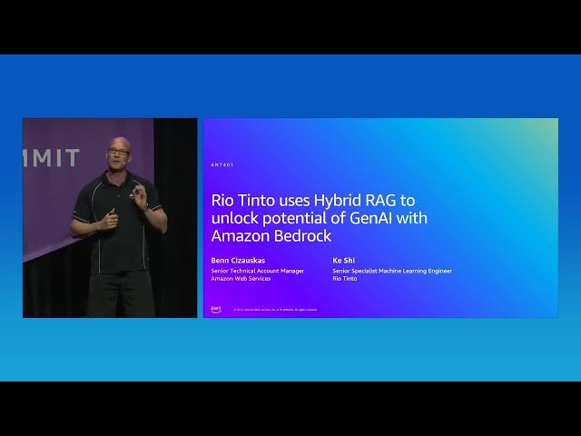 Explore how Rio Tinto, a leading mining company, harnesses Amazon Bedrock to transform terabytes of unstructured data into actionable knowledge bases through advanced generative AI applications. Learn about the innovative Hybrid RAG approach that combines Graph RAG and Vector RAG techniques to generate more accurate and contextually rich responses from large language models. Discover how Rio Tinto developed a GAI chatbot that enables advanced graph-based retrieval-augmented generation, empowering enhanced decision-making, knowledge retrieval, and innovation across their mining operations. Gain insights into scalable solutions for handling big datasets and understand practical applications of generative AI in enterprise environments. The session features expertise from Benn Cizauskas, Senior Technical Account Manager at AWS, and Ke Shi, Senior Specialist Machine Learning Engineer at Rio Tinto, who share real-world implementation strategies and lessons learned from deploying generative AI at scale in the mining industry.