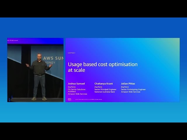 Discover how National Australia Bank's FinOps team achieved significant cost optimization in their development environments through strategic usage pattern analysis and collaboration with AWS in this 27-minute conference talk from AWS Summit Sydney 2025. Explore practical approaches to implementing usage-based cost optimization strategies at enterprise scale, learning from real-world case studies and proven methodologies. Gain insights into analyzing cloud usage patterns to identify optimization opportunities, understanding how large financial institutions approach FinOps challenges, and implementing scalable cost management solutions across development environments. Learn from AWS FSI Senior Solutions Architect Joshua Samuel, National Australia Bank's Senior Principal Engineer Chaitanya Krant, and AWS Senior Prototyping Engineer Julian Pittas as they share their collaborative approach to achieving measurable cost reductions while maintaining operational efficiency and development velocity.