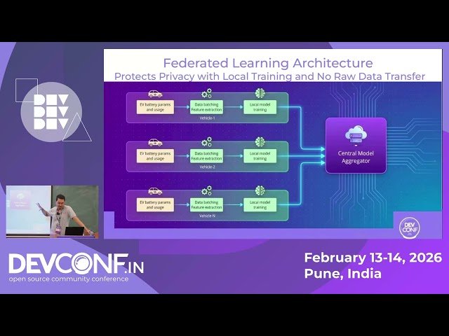 Learn to develop a battery range prediction system for electric vehicles using federated learning techniques in this 14-minute conference talk. Explore how federated learning addresses the critical need for periodic model updates in battery range prediction by accommodating changes in battery parameters over time and variations in driving dynamics. Discover the dual advantages of federated learning: aggregating insights from fleet-wide data patterns to create sophisticated models trained on diverse scenarios, while maintaining user privacy by avoiding raw data transmission to central repositories. Follow the implementation of a range prediction solution using simulated vehicle data and the Flower FL framework, designed for easy deployment on embedded Texas Instruments edge platforms. Understand the architecture where edge components operate as quality managed (QM) components while central model aggregation runs as containerized applications on-premises or in the cloud, with communication established through gRPC protocols.