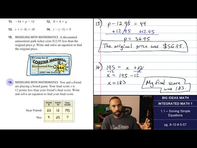 Big Ideas Math [IM1]: 1.1 - Solving Simple Equations (Lecture & Problem Set)