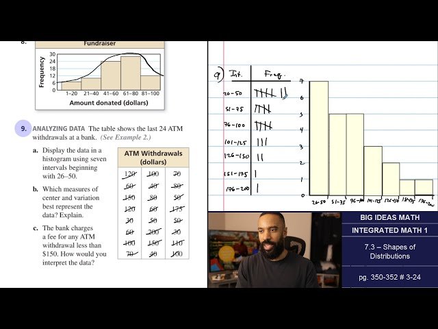 Learn about analyzing and comparing data distributions in this comprehensive mathematics lecture and problem-solving session. Explore how to analyze symmetric and skewed data distributions through histograms and box & whisker plots, understanding when to use specific measures of center and variation. Master the 68-95-99.7 rule for standard deviations, where you'll discover how different standard deviation ranges encompass varying percentages of data points. Work through 24 detailed practice problems that reinforce concepts of data analysis, with special attention to examples demonstrating the practical application of the standard deviation rule. Access downloadable textbook materials and follow along with clearly marked timestamps for each topic and problem set, making it easy to navigate to specific sections of interest or review particular concepts as needed.