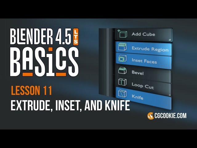 Learn three essential modeling tools in this 12-minute Blender 4.5 tutorial covering the Extrude, Inset, and Knife functions. Master the Extrude tool (hotkey E) to create new geometry by extending selected faces, edges, or vertices outward from existing mesh elements. Discover how to use the Inset tool (hotkey I) to generate new faces within selected faces, creating detailed surface variations and preparing geometry for further modeling operations. Explore the Knife tool (hotkey K) for cutting new edges and vertices into mesh surfaces to add topology and create complex geometric shapes. Practice using additional hotkeys and tool-specific options available in the status bar and tool header to modify each tool's behavior and achieve precise modeling results. Gain hands-on experience with these fundamental mesh editing techniques that form the foundation of 3D modeling workflows in Blender.